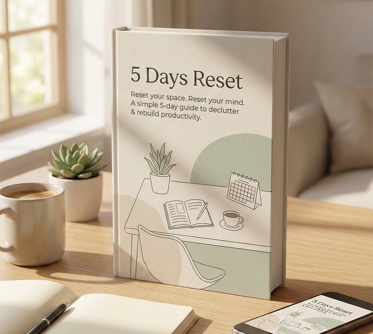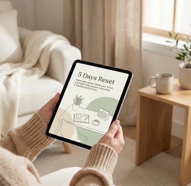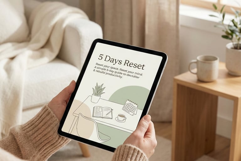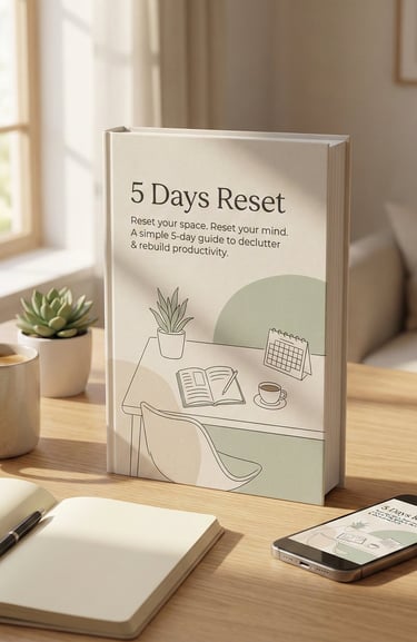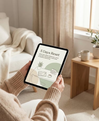 A simple 5-day system designed to help you reset your space, your mind, and your habits, without overwhelm.